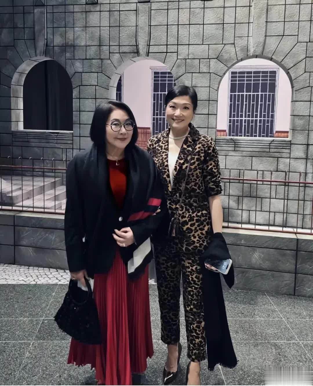 她的女儿叶子青则身着一套豹纹西装,脖上佩戴着银色项链,装扮个性前卫,母女二人似乎心情愉悦,流露出温馨的氛围。